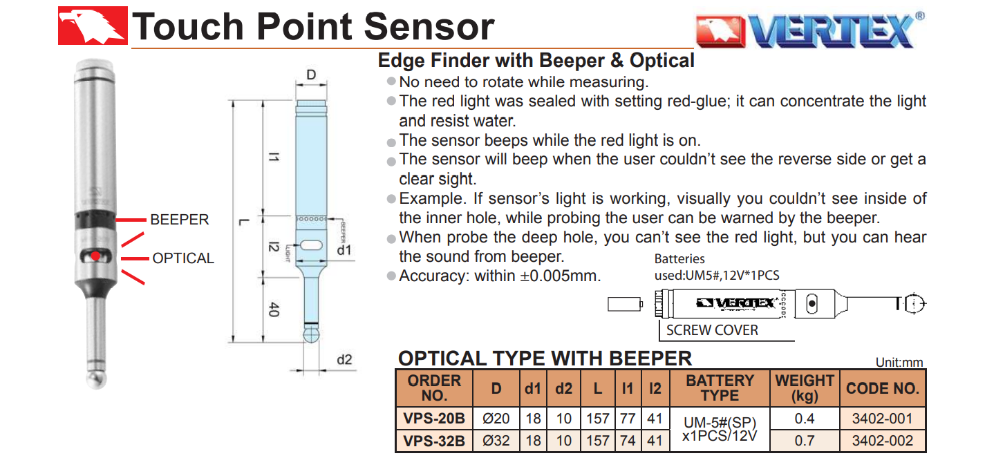 – Cảm biến tiếp xúc VPS-20B, VPS-32B không cần quay khi đo.