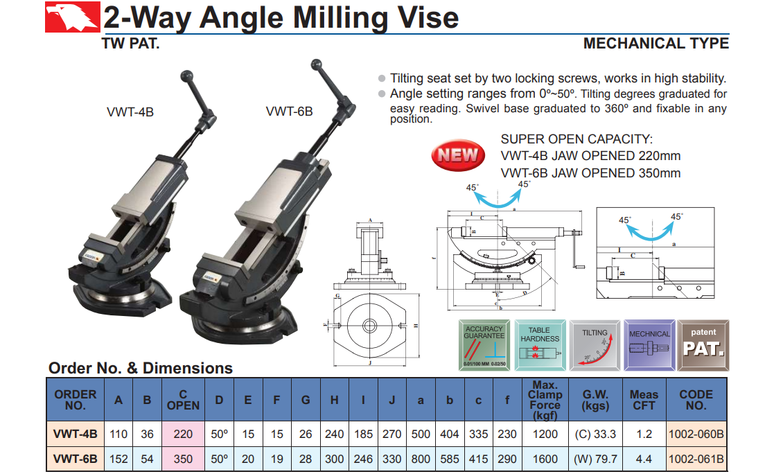 Ê tô xoay 2 hướng Vertex VWT-B dùng để kẹp chặt các chi tiết trong quá trình gia công phay, khoan…