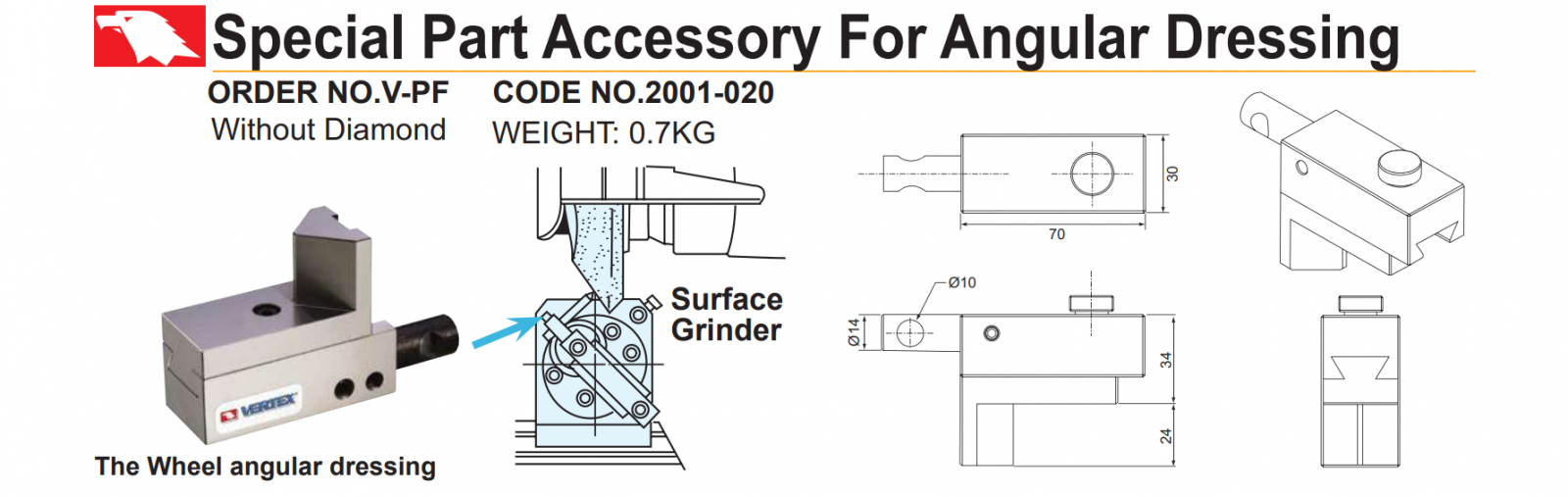 Đồ gá sửa đá Vertex V-PF dùng để gá kẹp các mũi sửa đá và sửa đá mài theo các góc khác nhau theo yêu cầu sử dụng